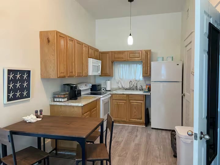 Inside the suite, you'll find two inviting queen-size beds, including a convenient pullout couch, providing ample sleeping space for your group. The private bathroom ensures your comfort, and the fully equipped kitchen with a dining table allows you to prepare and enjoy delicious meals at your convenience.